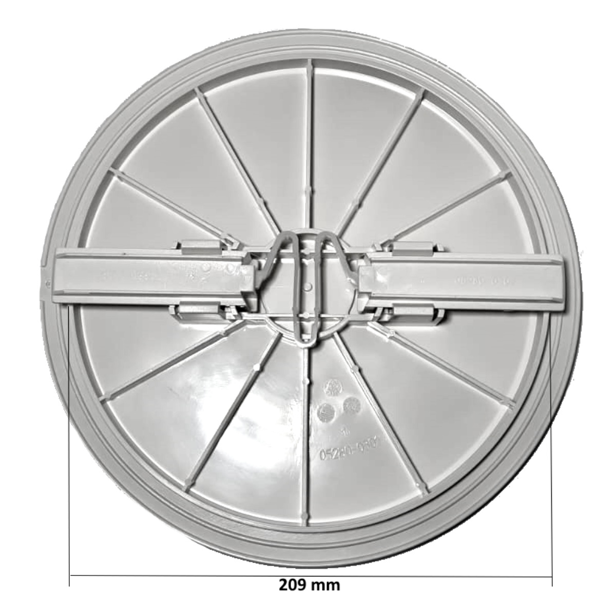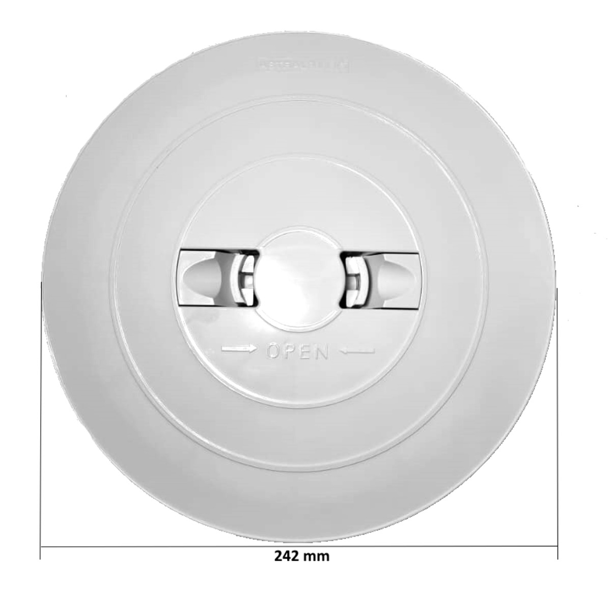Coperchio rotondo con alette centrali per la chiusura e l’apertura per lo skimmer Astralpool con portata da 17,5 Lt.