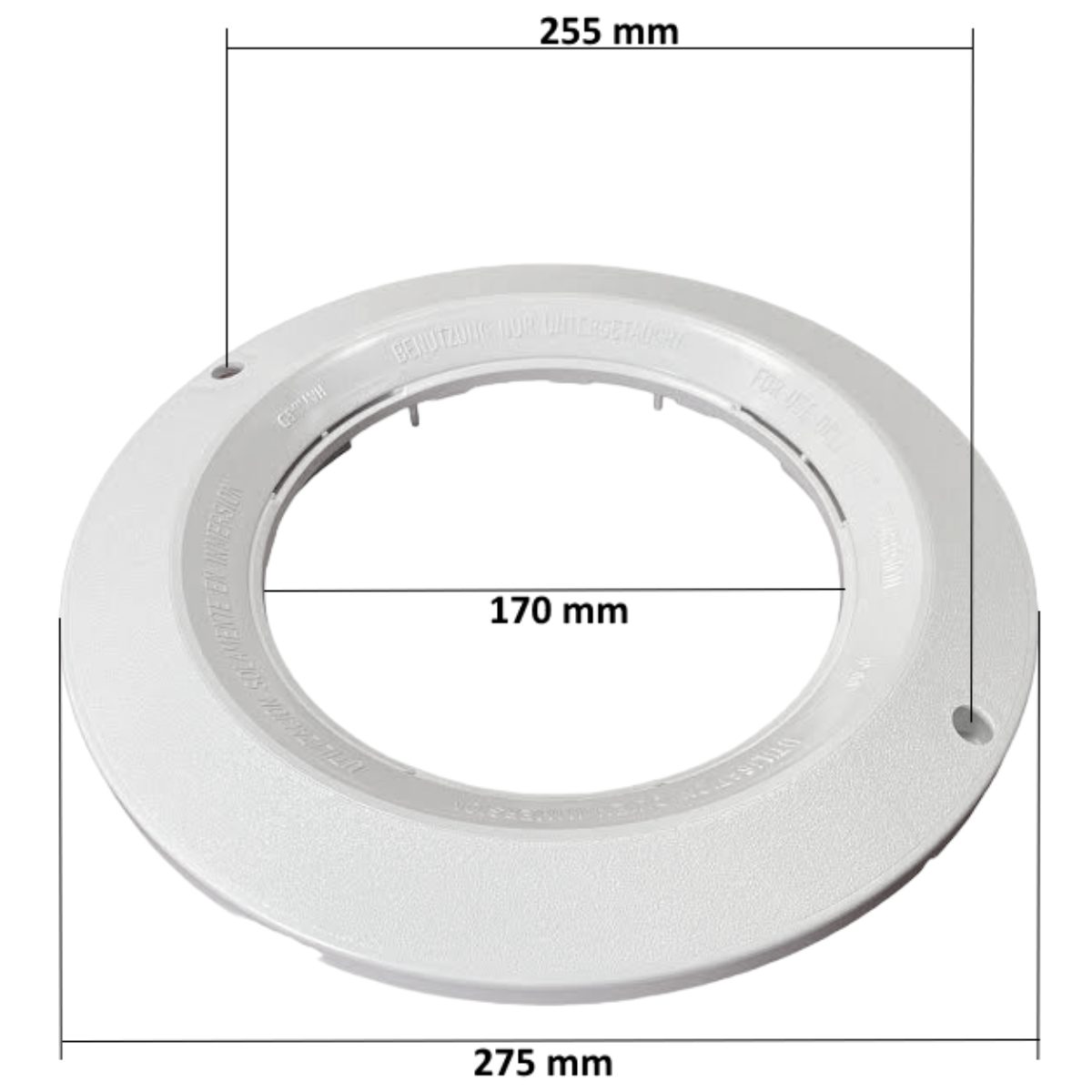 Corona o cornice frontale realizzata in ABS bianco per faro subacqueo Hayward con lampada Par56 300 Watt.