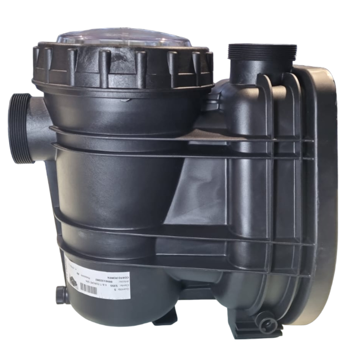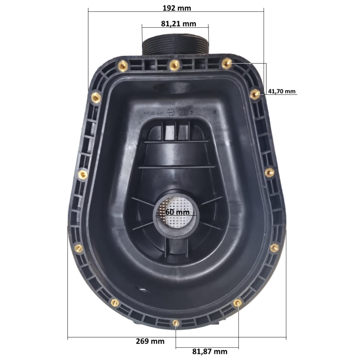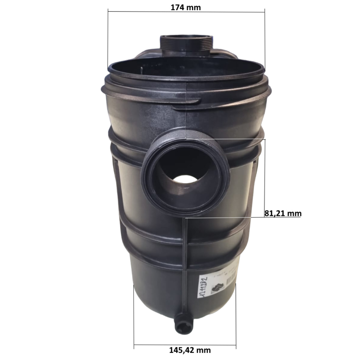 Corpo pompa prefiltro nero completo di cestello prefiltro, coperchio trasparente, ghiera di chiusura nera e guarnizione del coperchio trasparente per le pompe Espa.