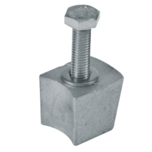 Cuneo mobile completo di dado, vite e rondella utilizzato per il fissaggio del montante al corpo rigido di anocraggio per le scalette Inox Pool’s.