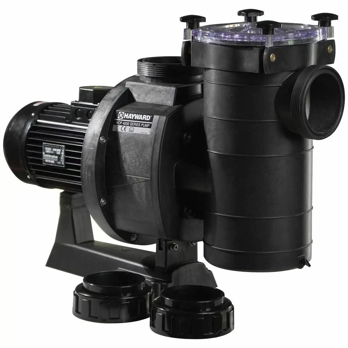 La pompa centrifuga Kripsol-Hayward HCP4000 realizzata con un corpo prefiltro in materiale termoplastico stampato di grande capacità (14l) con coperchio in policarbonato trasparente con sistema di chiusura per mezzo di pomelli pieghevoli in acciaio Inox AISI 304.