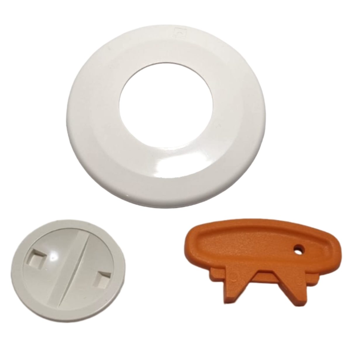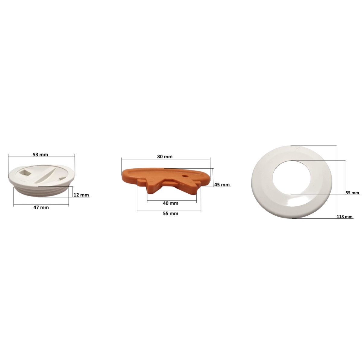 Set di coperchio completo di copricornice, tappo di chiusura e chiave di serraggio per le bocchette aspirafango o vacum Astralpool.