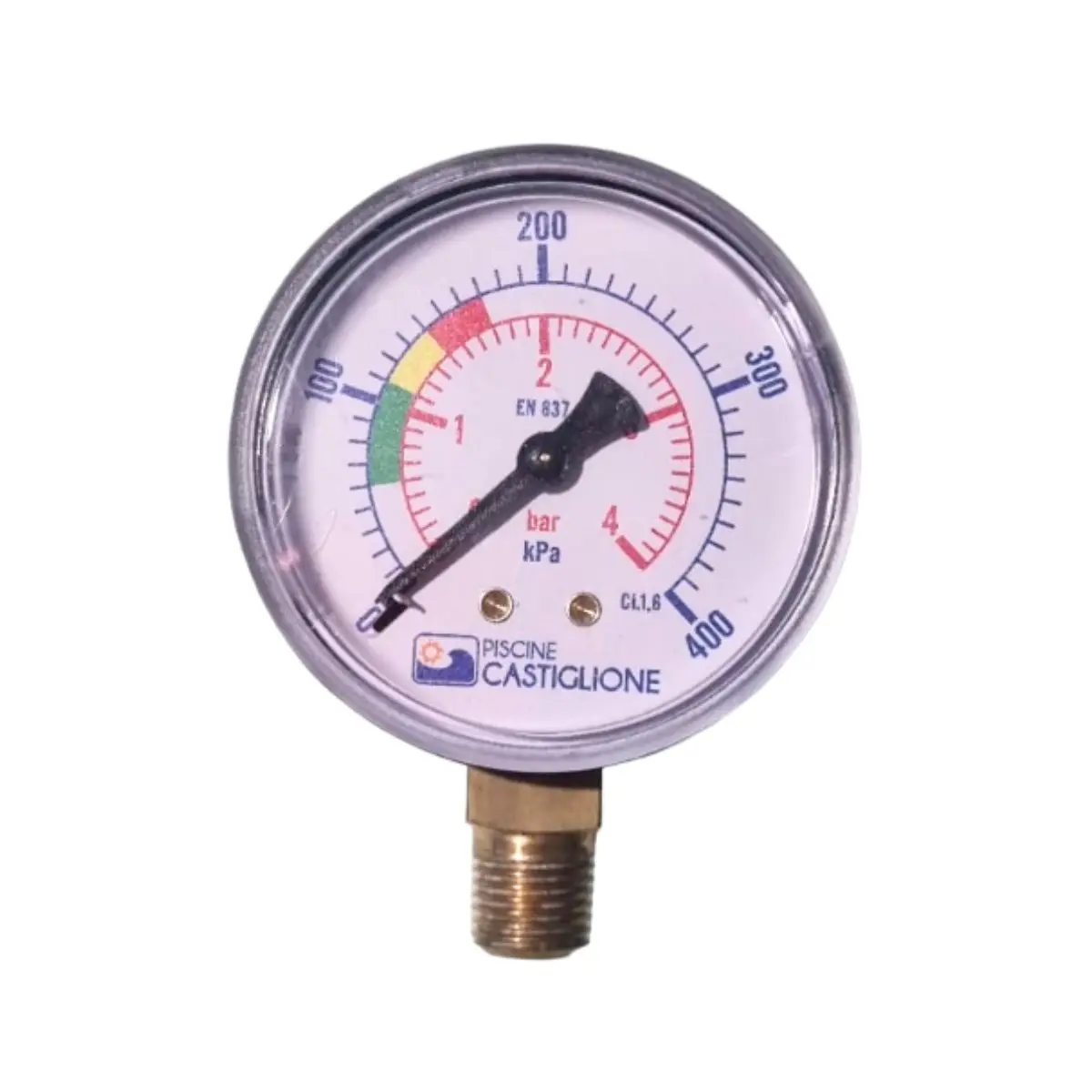 Manometro per la misurazione della pressione di esercizione del bombolone di filtrazione, con attacco laterale da ø1/4″ per il filtro a sabbia Pools.
