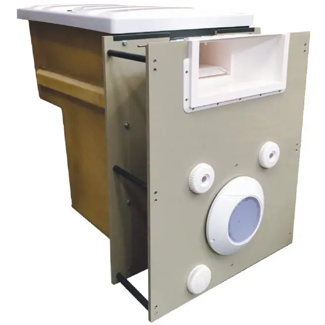 - Skimmer maggiorato per l’aspirazione dell’acqua (a scelta tra Skimmer bocca svasata o Skimmer sfioratore)