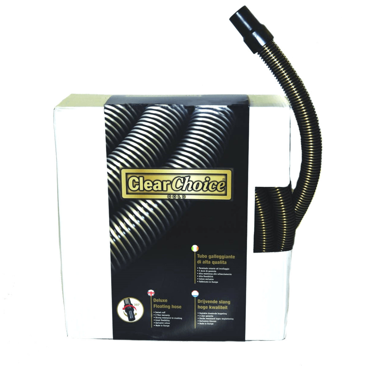 Tubo aspirafango galleggiante spiralato per l’aspirazione del fondo della piscina, completo di raccordi in testa da ø38 mm in PVC con sezione standard per adattarlo a tutti i tipi di spazzole aspirafango.